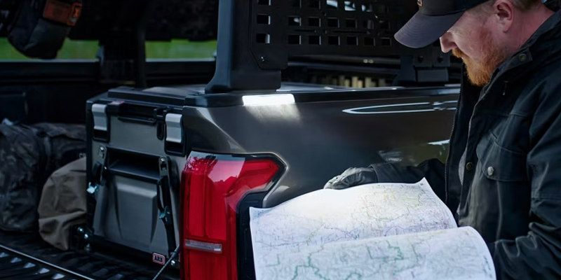 - Available in either 5-ft. or 6-ft. configurations, Tacoma’s aluminum-reinforced bed is composed of an ultra-durable Sheet-Molded Composite (SMC) surface that is strong, resilient and lightweight. There’s also a slew of useful available features, like an onboard air compressor, a 2400W AC power supply, 2 exterior LED scene lighting, and more.